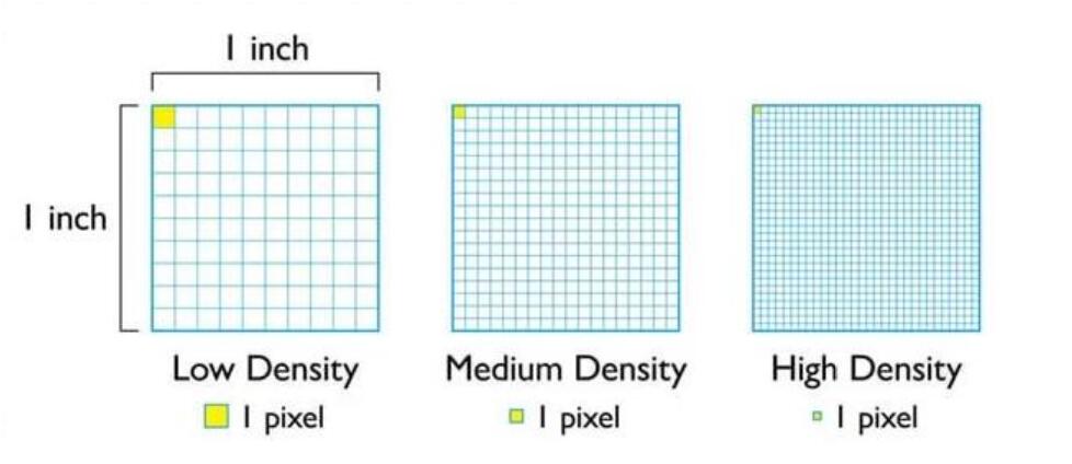 Pixel Density is usually measured in Pixels Per square meter, which refers to the number of pixels present per square meter on the display
