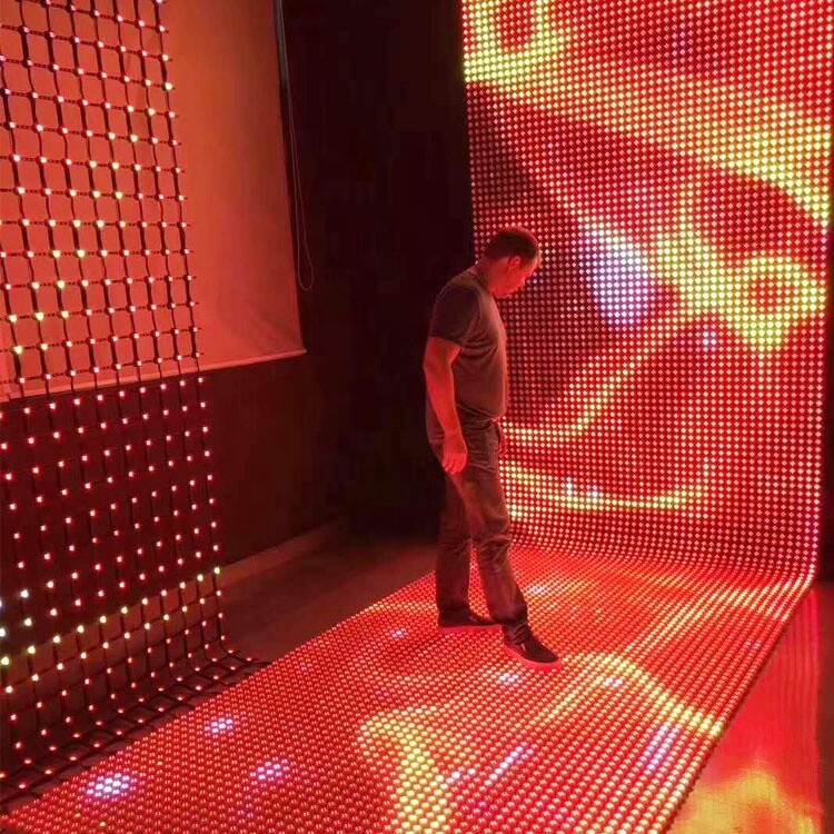 LED Mesh Screen with high artistry and creativity that is easy to assemble into various shapes, widely used for building the facade, mall, wedding decoration, and rental events.